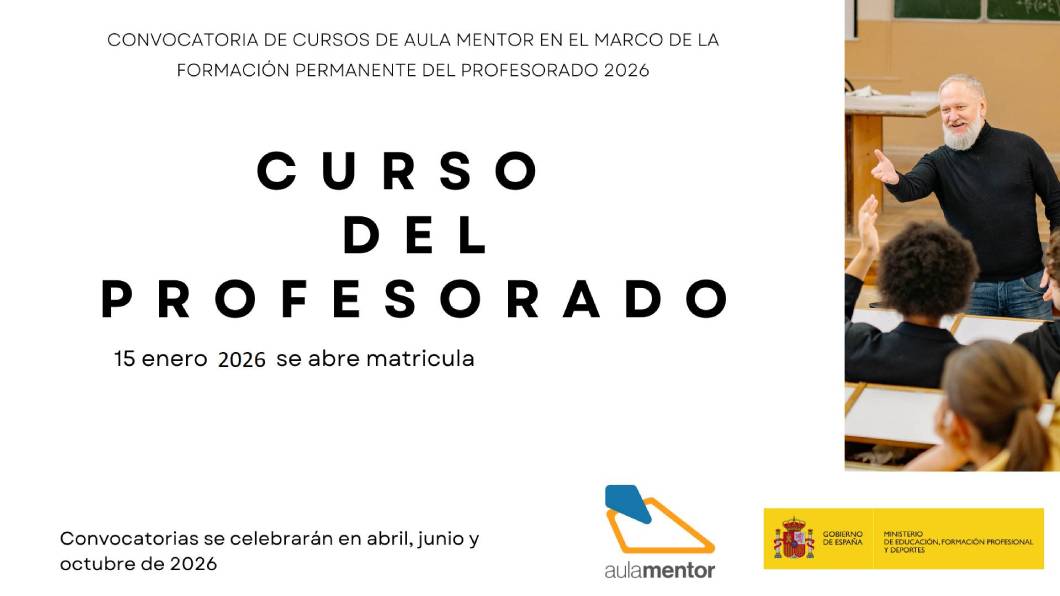 El 15 de enero de 2026 se abría el plazo de matriculación en los cursos pertenecientes a la Convocatoria de Formación del Profesorado, destinado a los docentes que tienen interés en realizar cursos Mentor que, una vez finalizados satisfactoriamente dentro de las convocatorias de abril, junio y octubre, podrán ser inscritos en el Registro de Formación del Profesorado del Ministerio de Educación, Formación Profesional y Deportes.