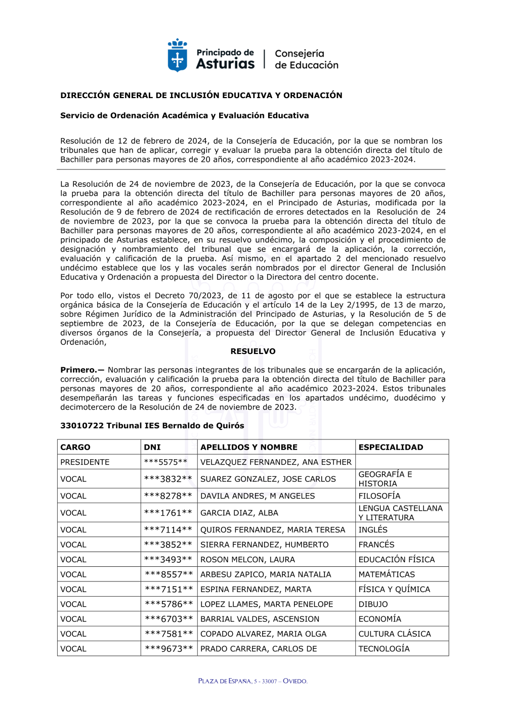 Consultas: oposiciones@educastur.org