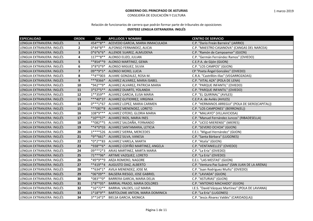- El nombre de cada documento comienza con el código del cuerpo y el código y nombre de la especialidad.