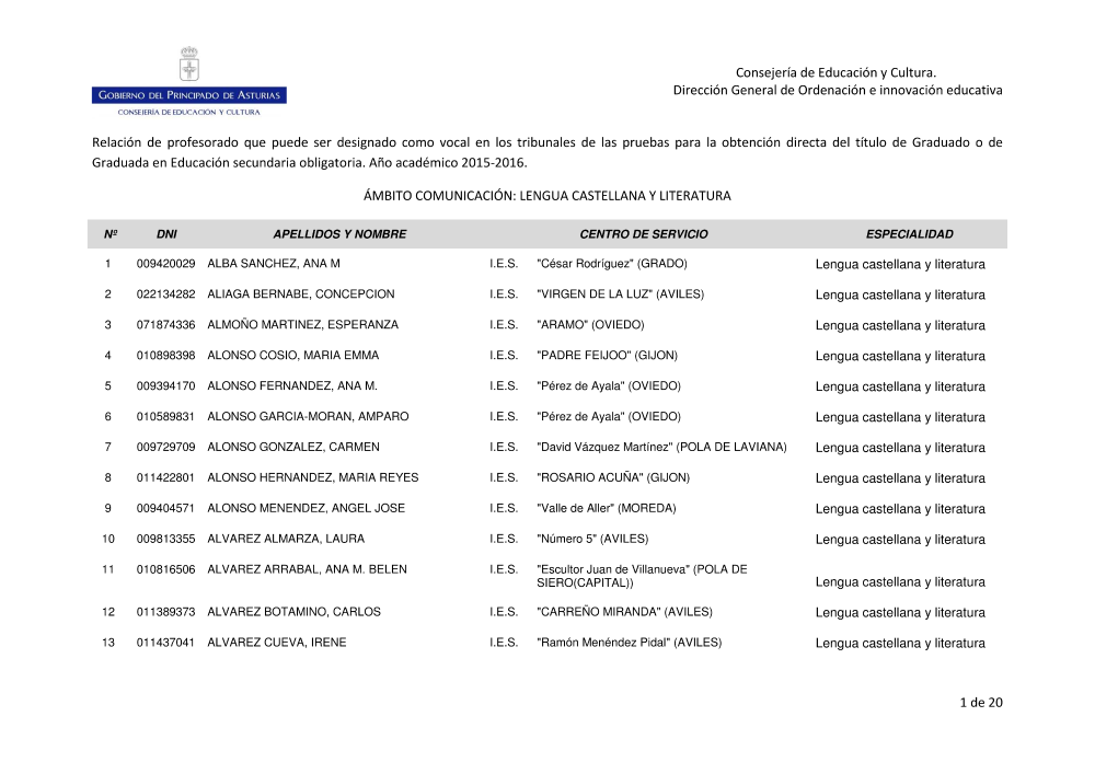 Obtención título ESO 2015-16. Designación tribunales. Listado vocales elegibles.Lengua cast. y literatura (pdf)