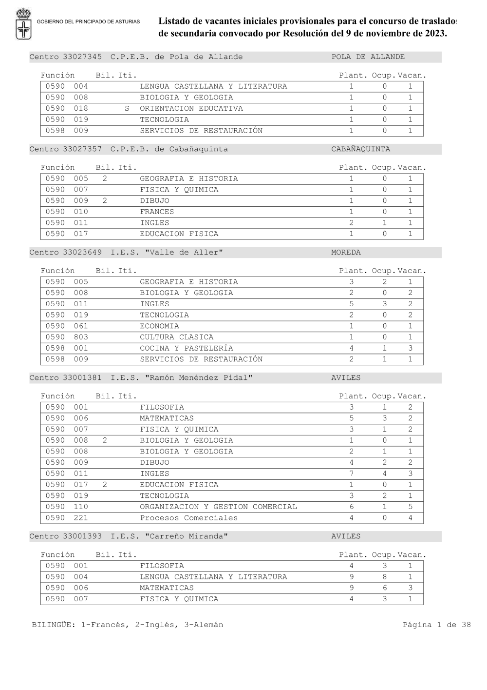 - El nombre de cada documento comienza con el código del cuerpo y el código y nombre de la especialidad.