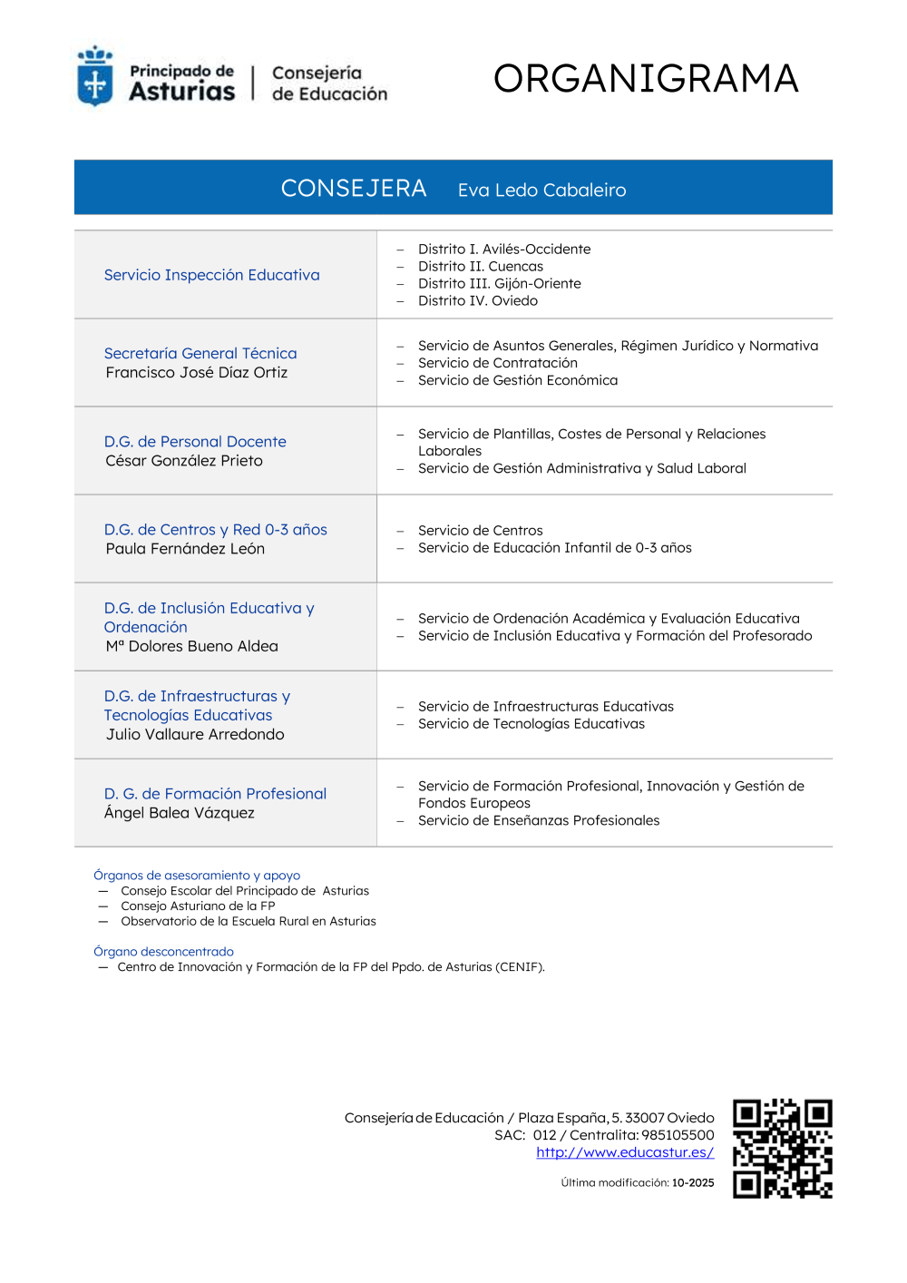 Organigrama de la Consejería de Educación (tabla)