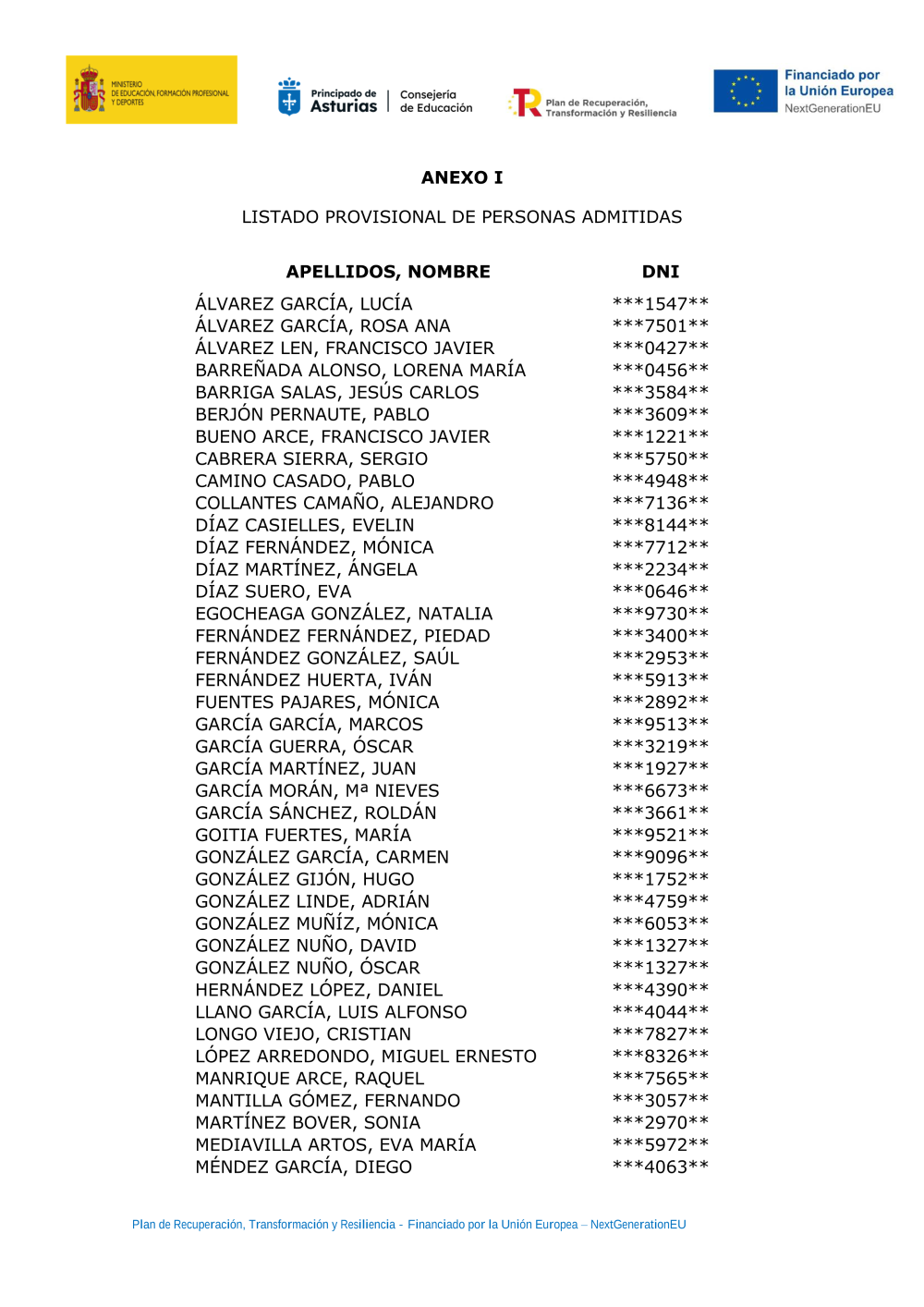 - El nombre de cada documento comienza con el código del cuerpo y el código y nombre de la especialidad.