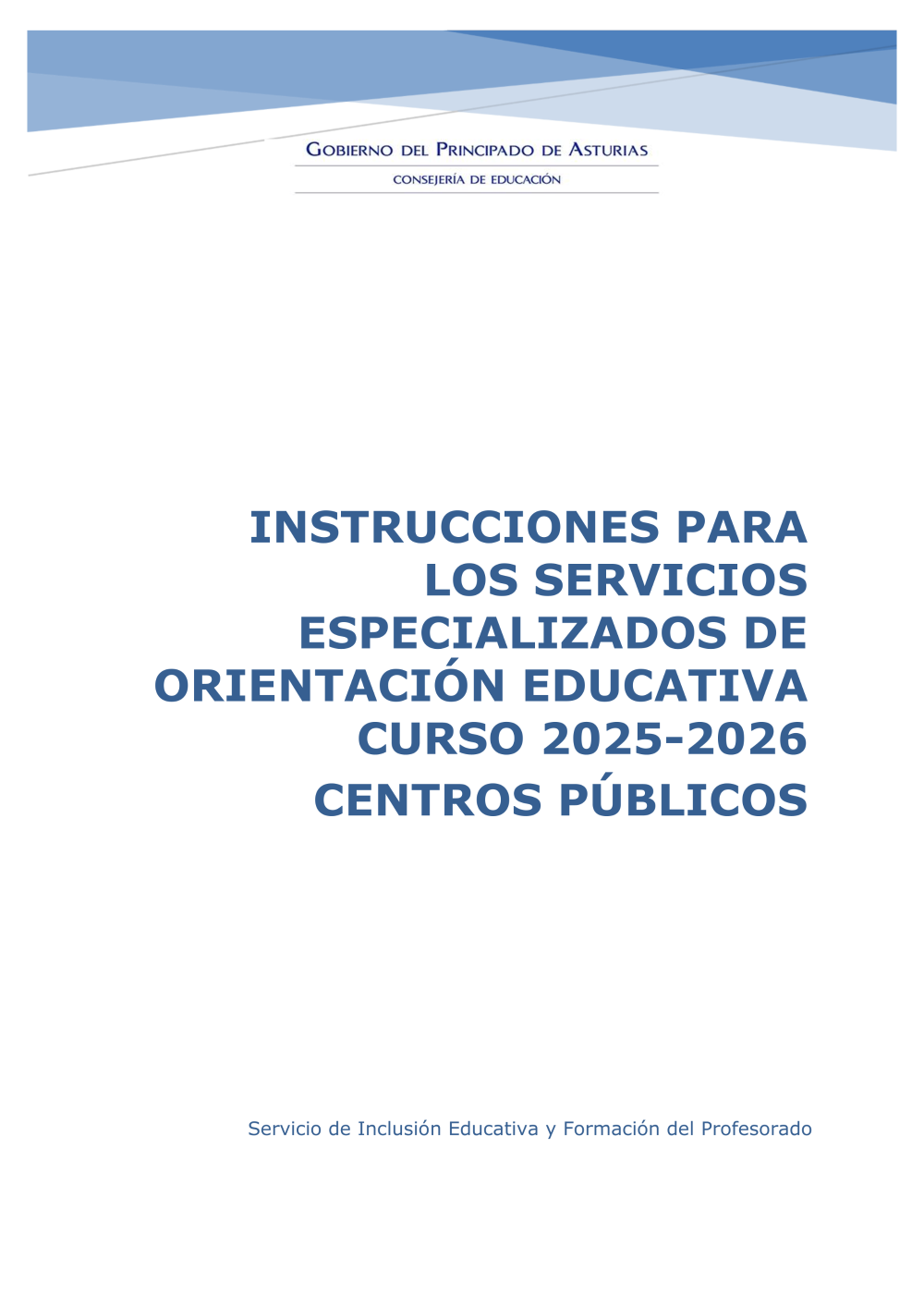 INSTRUCCIONES PARA LOS SERVICIOS ESPECIALIZADOS DE ORIENTACIÓN EDUCATIVA