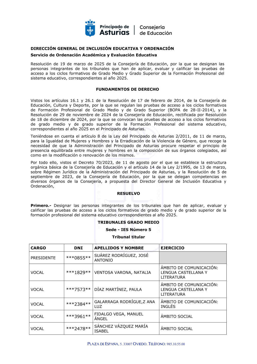 Consultas: oposiciones@educastur.org