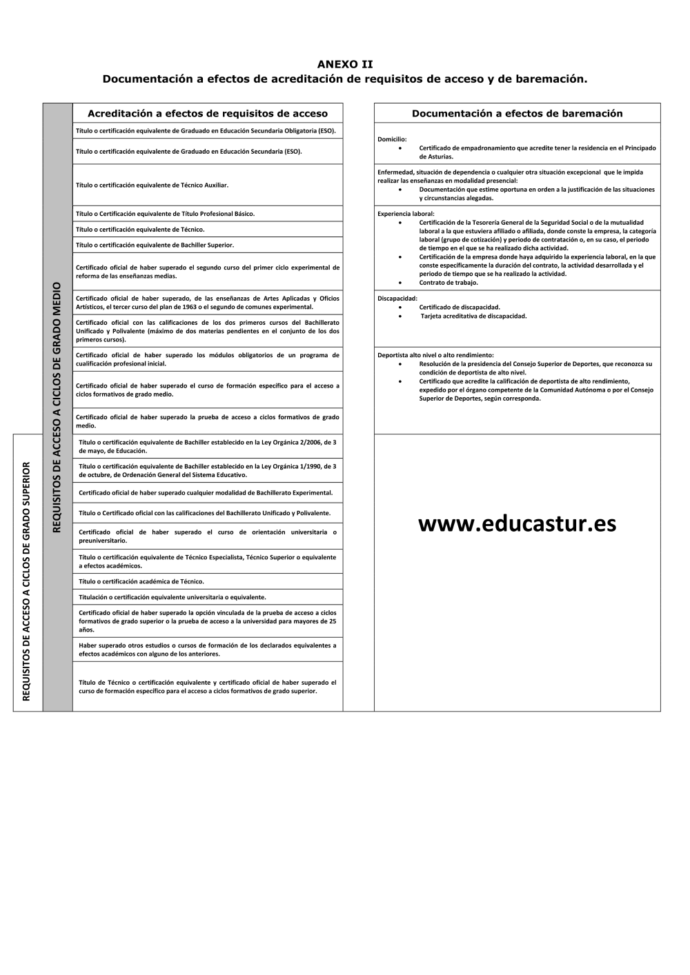 Documentación para la acreditación de los requisitos de acceso y/o baremación