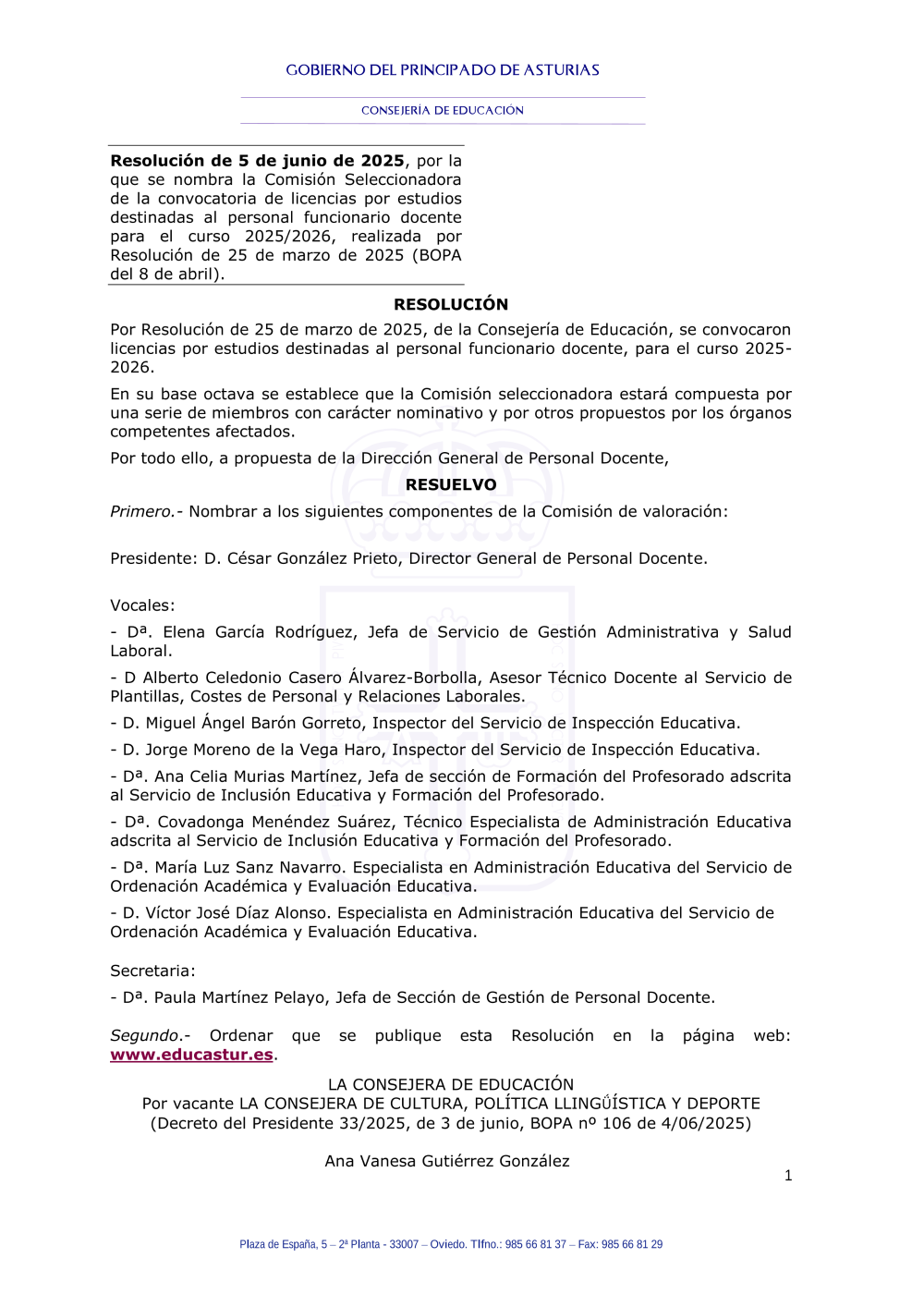 Consultas: oposiciones@educastur.org