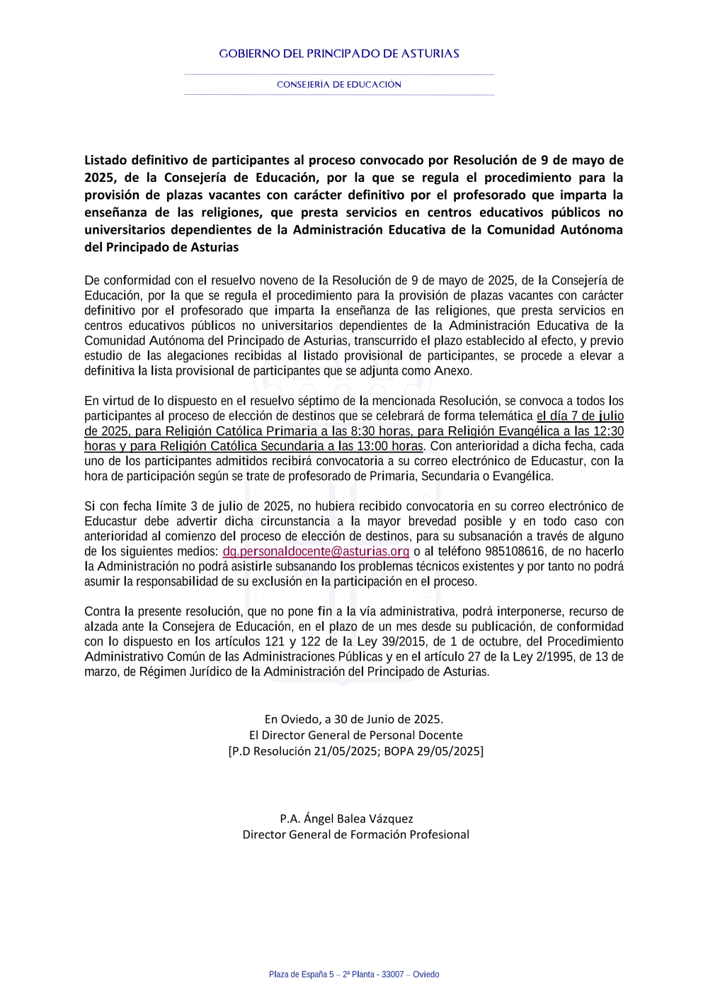 Consultas: oposiciones@educastur.org