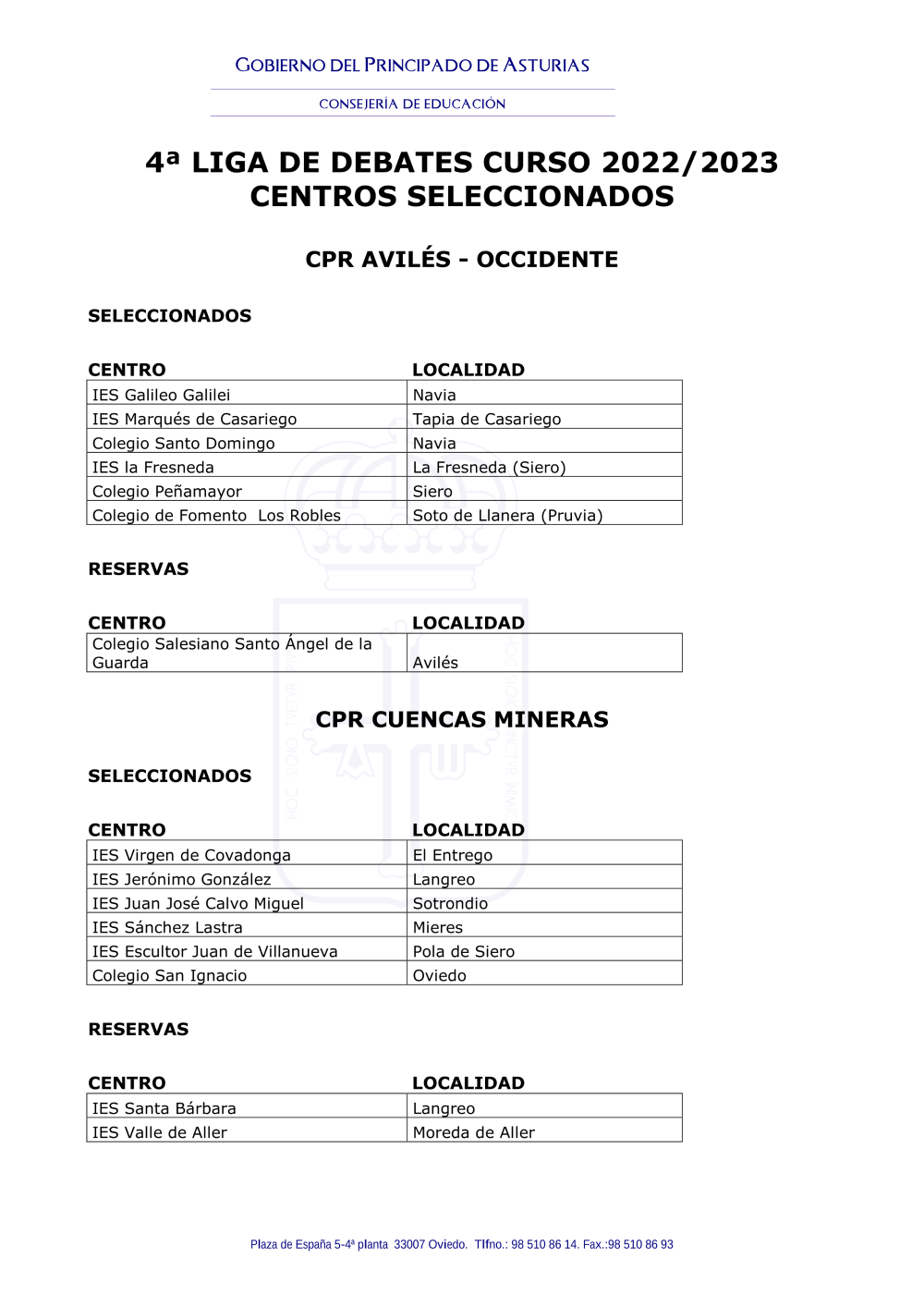 Consultas: oposiciones@educastur.org