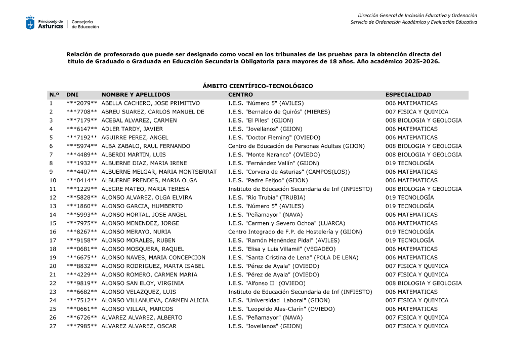Consultas: oposiciones@educastur.org