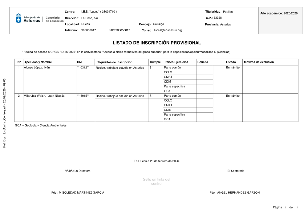 Versión 1.0Por BEATRIZ PEREZ GARCIA, en 26/2/26 9:59Registro sin cambios