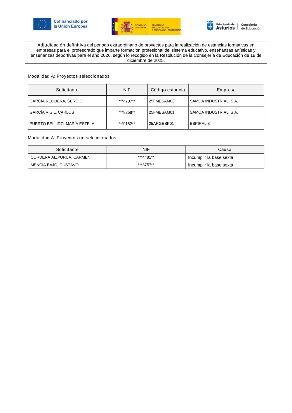 Selección de proyectos para la realización de estancias formativas en empresas para el profesorado que imparte Formación Profe