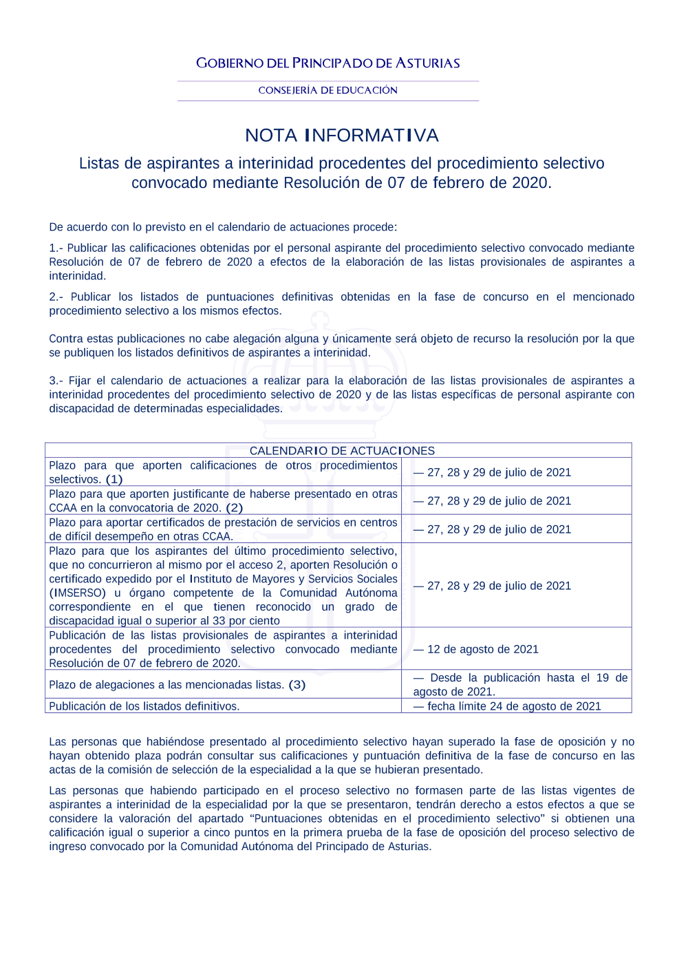 Microsoft Word - 2021 07 21 Nota informativa Interinos 1 - Listados aspirantes procedimiento selectivo V4.doc