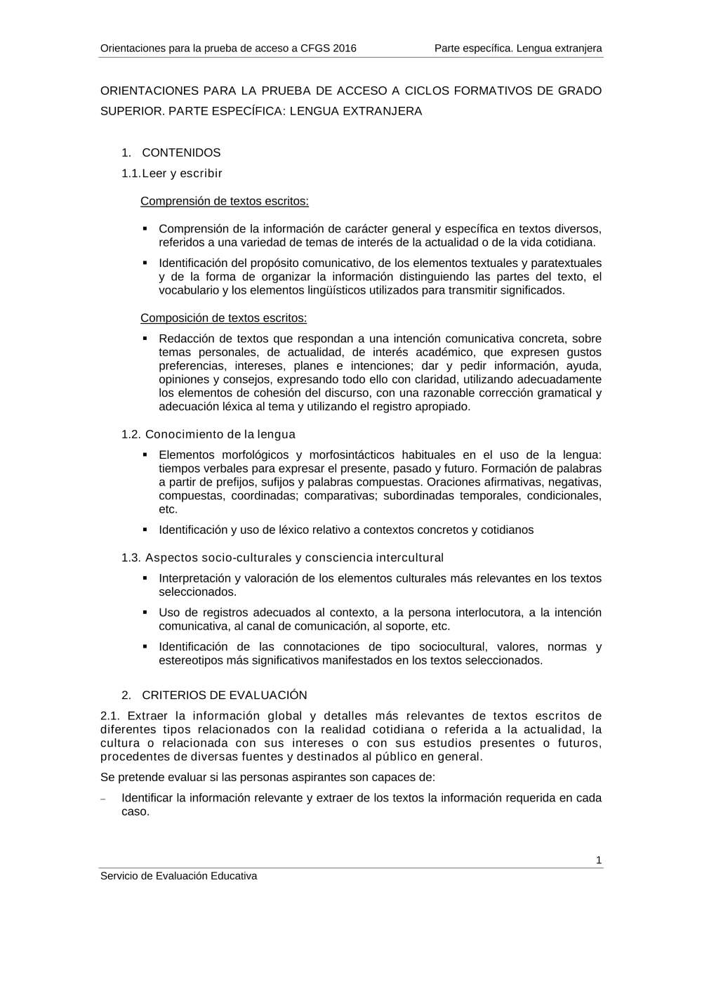 - 2016 Orientaciones prueba acceso ciclos GS. Parte específica. Lengua extranjera (pdf)