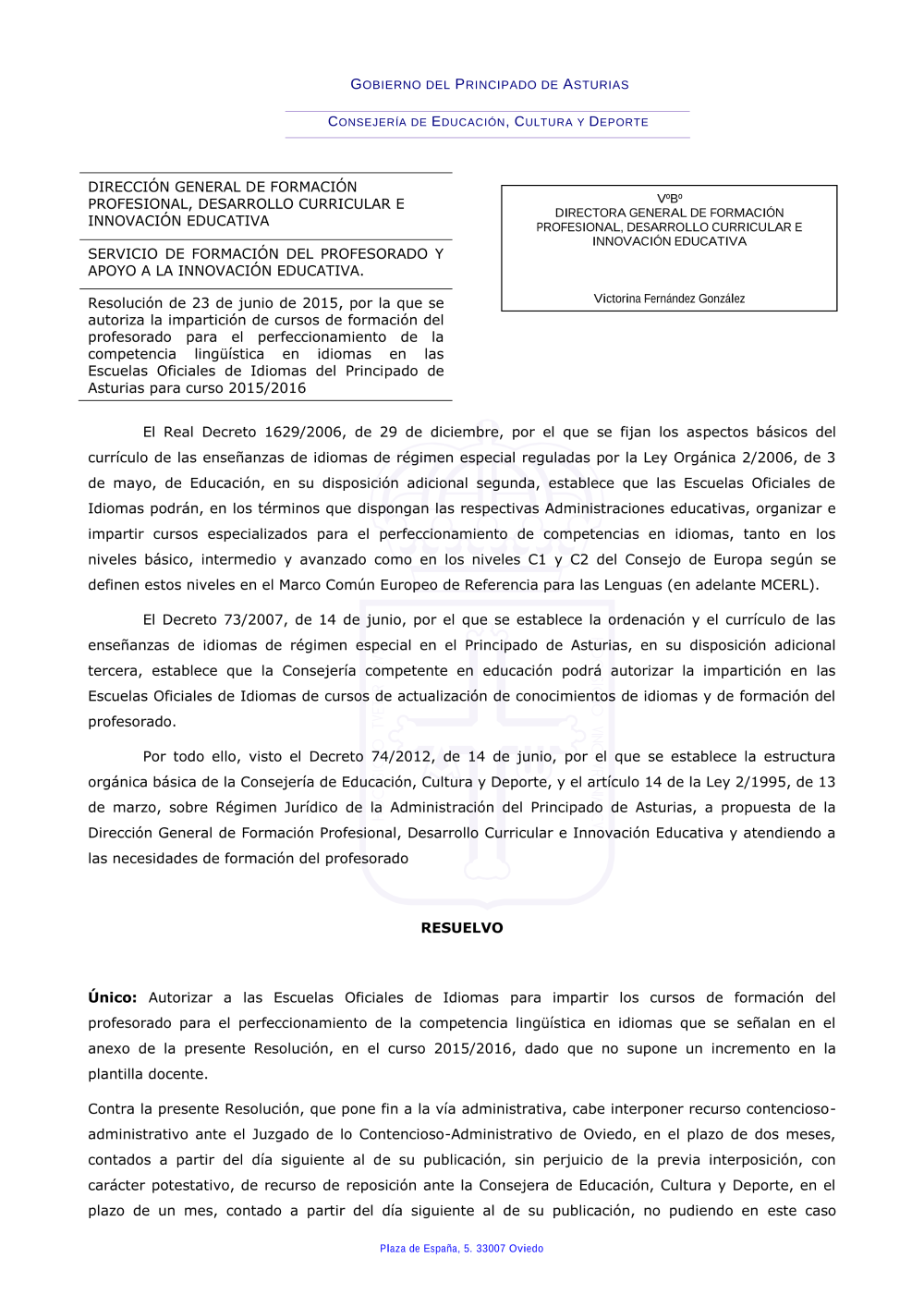 Cursos competencia lingüística. Resolución de autorización 2015-16 (pdf)