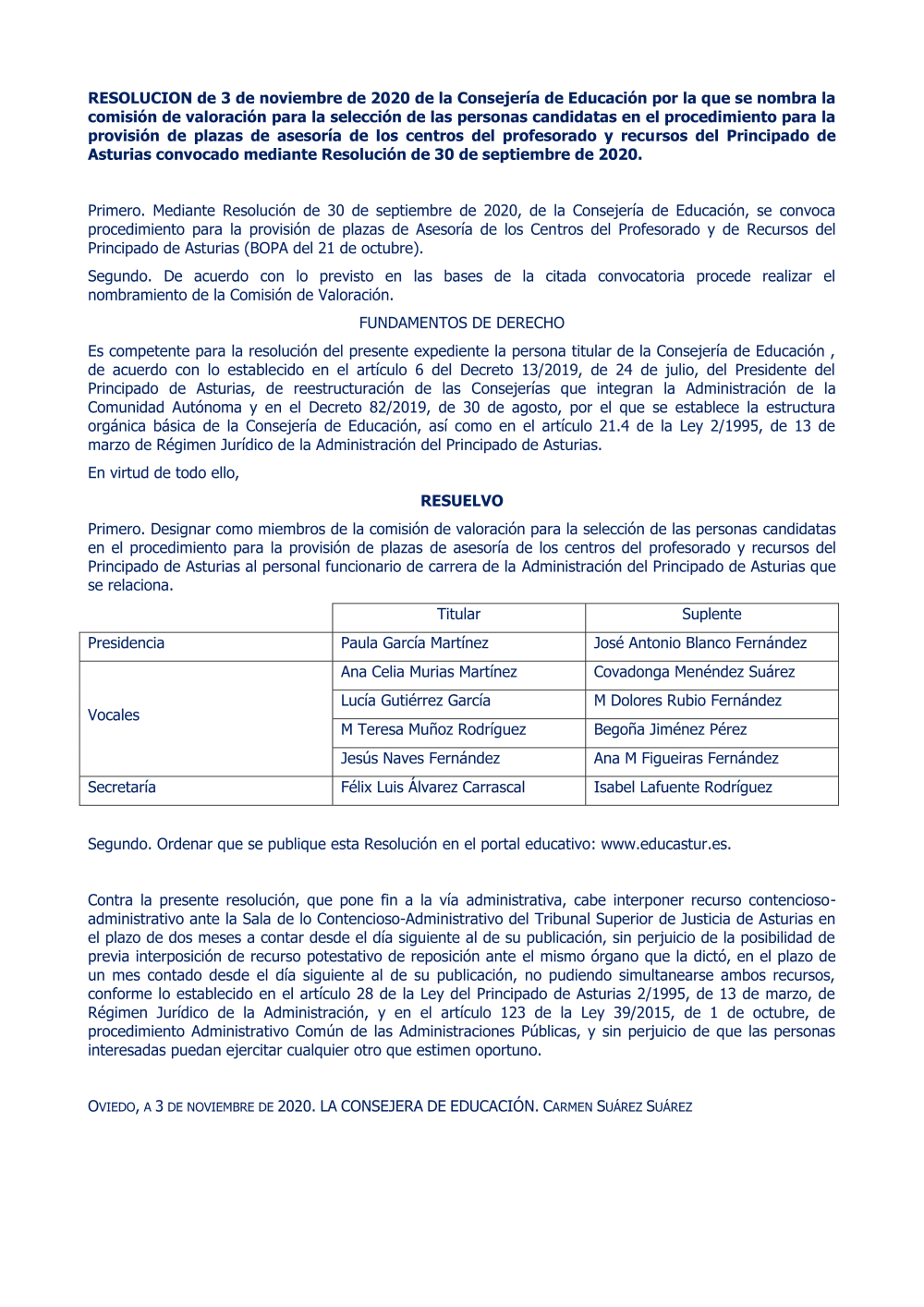 - El nombre de cada documento comienza con el código del cuerpo y el código y nombre de la especialidad.