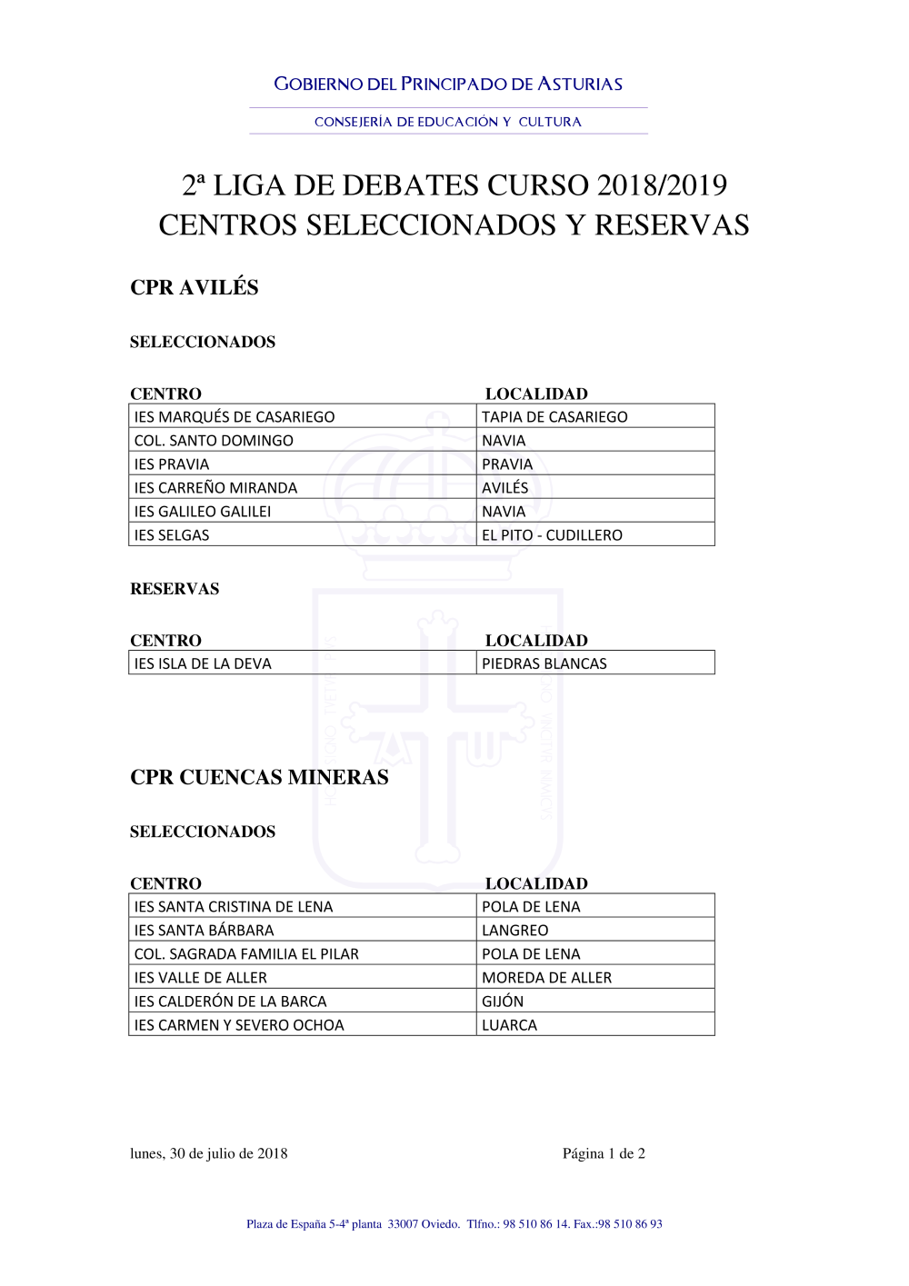 2018_07_CENTROS SELECCIONADOS Y RESERVAS 2ªLIGA DE DEBATES 2018-19.pdf