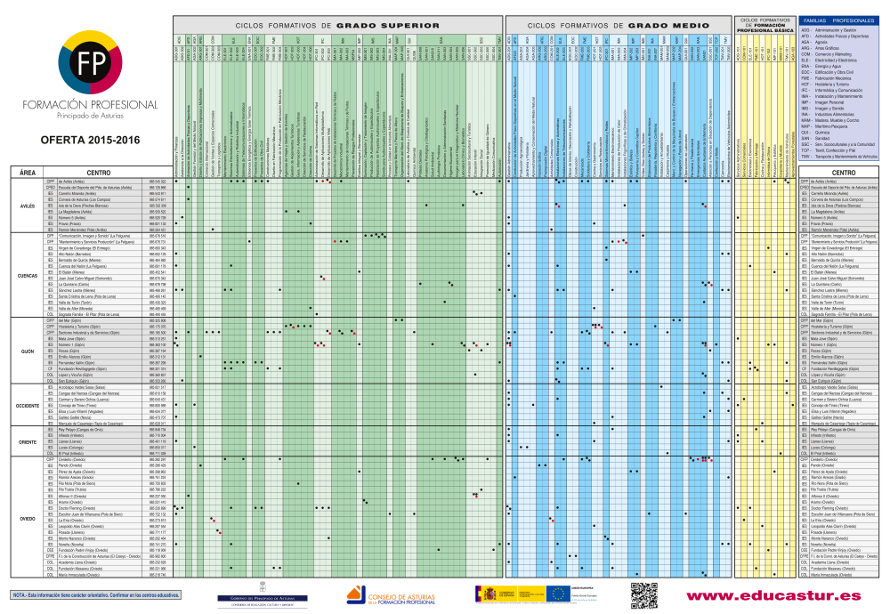 - Oferta formativa de Formación Profesional. Curso 2015-2016