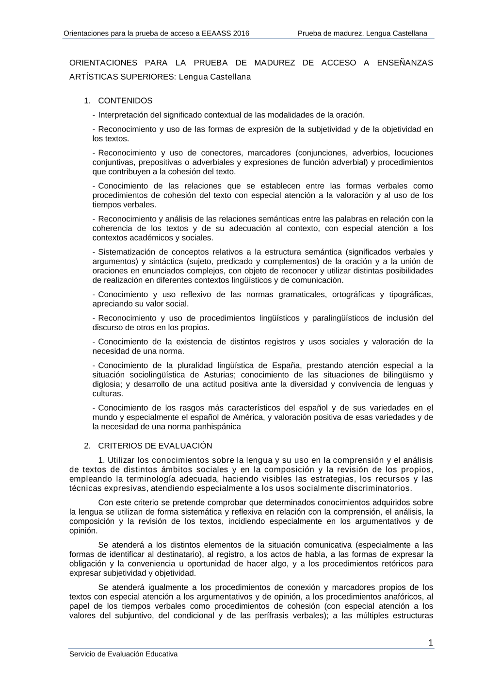 Orientaciones prueba de madurez de las enseñanzas artísticas superiores 2016. Orientaciones Parte -B, Lengua castellana (pdf)