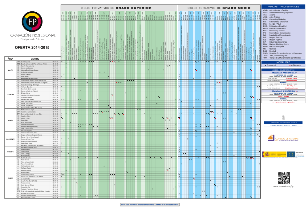 - 2015-05 Oferta Ciclos formativos (todos). Tabla por centros, familias, localidad