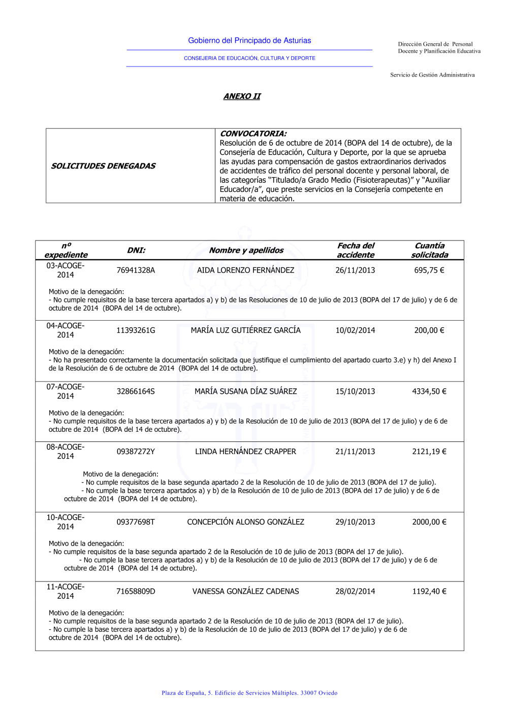 AYUDAS accidentes DENEGADAS_ 2014