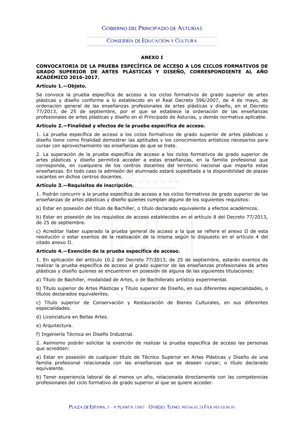Pruebas de acceso a Ciclos de GS. Artes plásticas y diseño 2016. AnexoI, Prueba Específica (pdf)