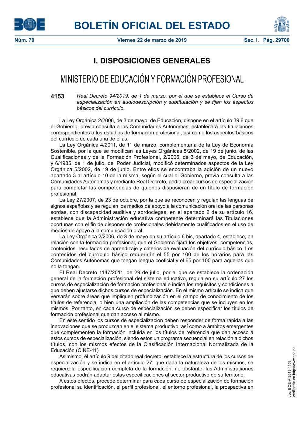 Disposición 4153 del BOE núm. 70 de 2019