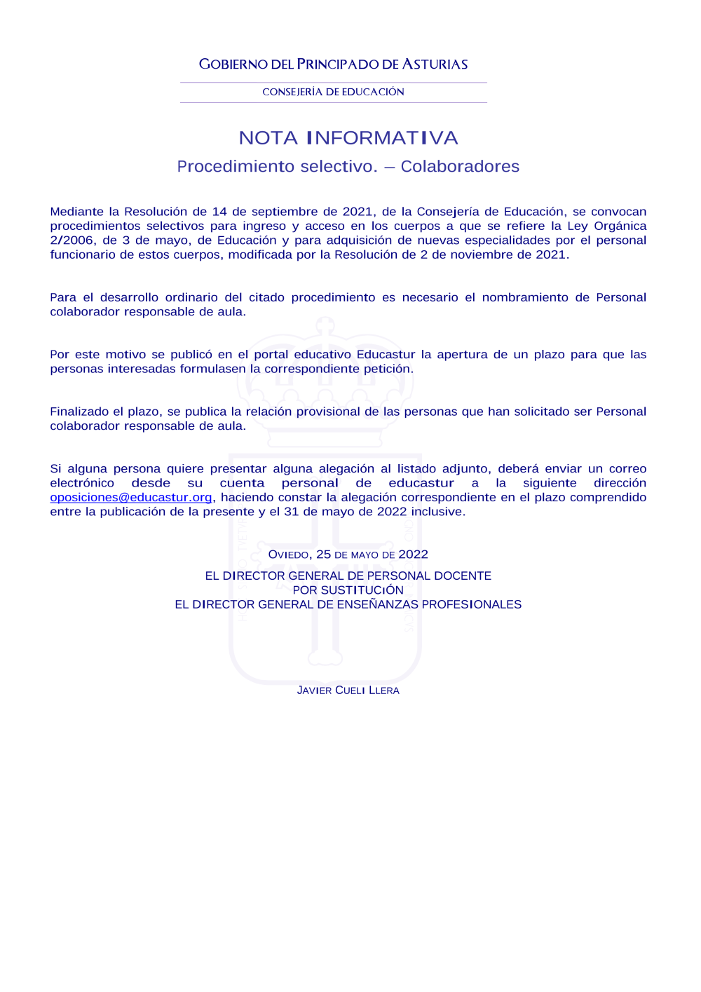 Consultas: oposiciones@educastur.org