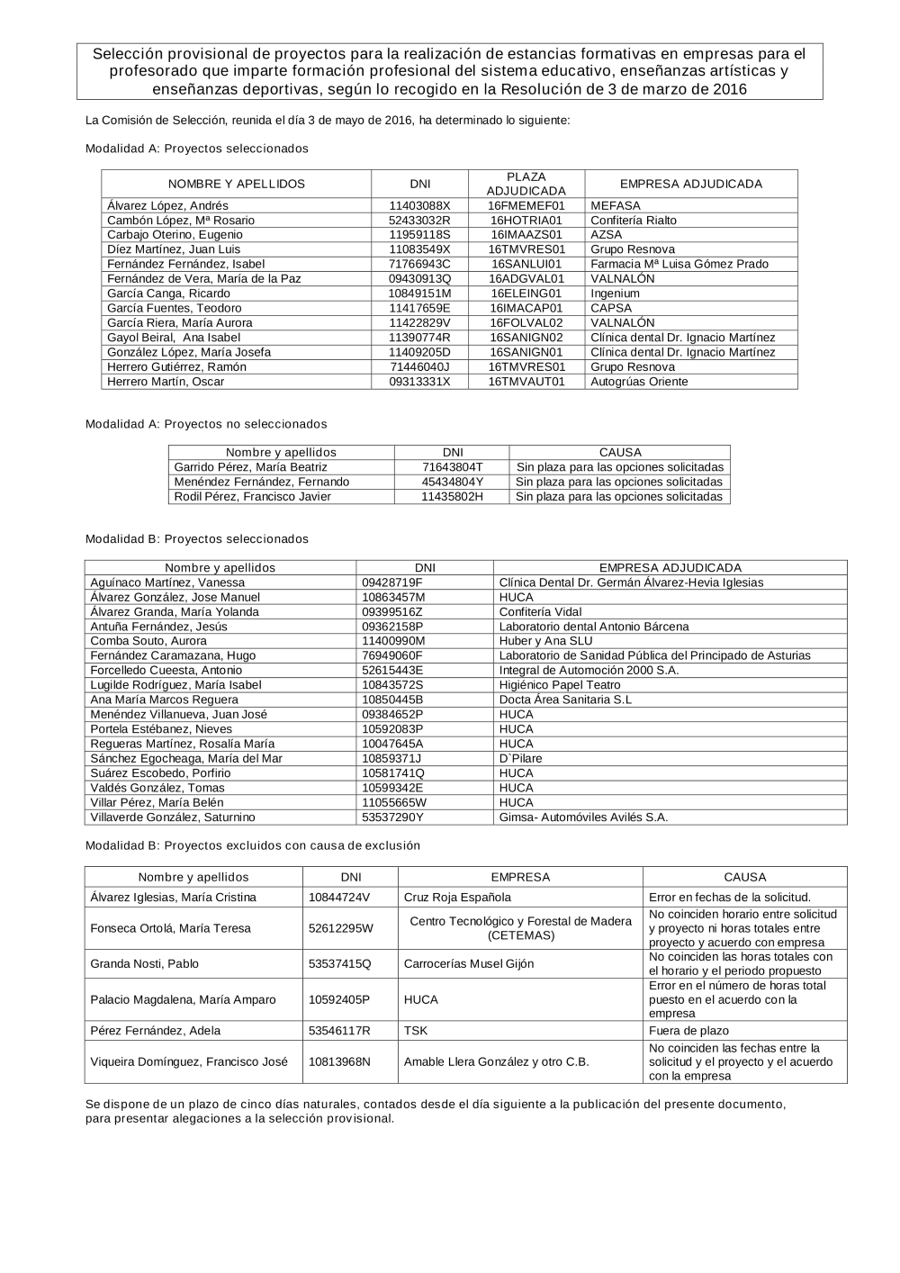Selección de proyectos para la realización de estancias formativas en empresas para el profesorado que imparte Formación Profe
