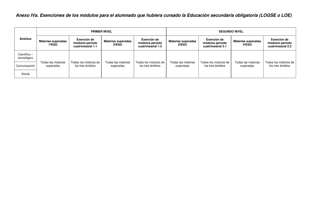 - Tablas de convalidaciones, exenciones y equivalencias