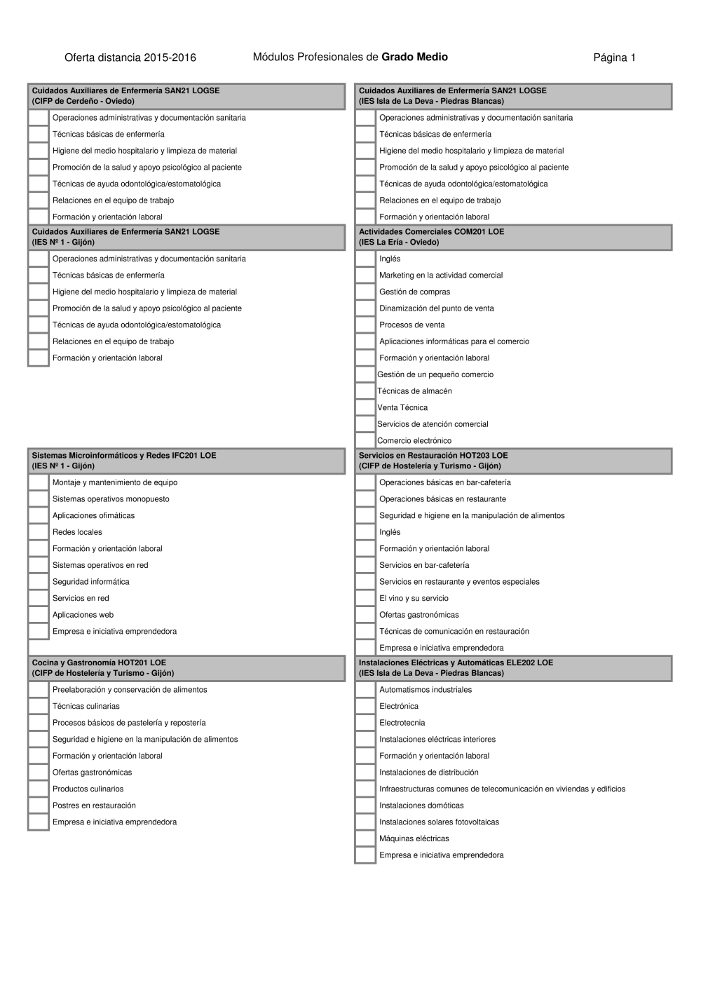 - Oferta módulos de Grado Medio. Curso 2015-2016 (pdf)