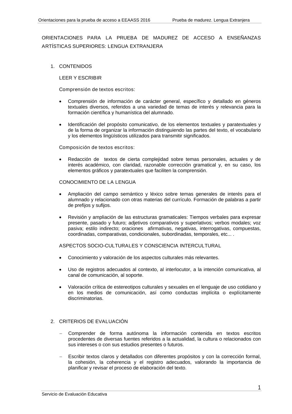 Orientaciones prueba de madurez de las enseñanzas artísticas superiores 2016. Orientaciones Parte I-C, Lengua extranjera (pdf)