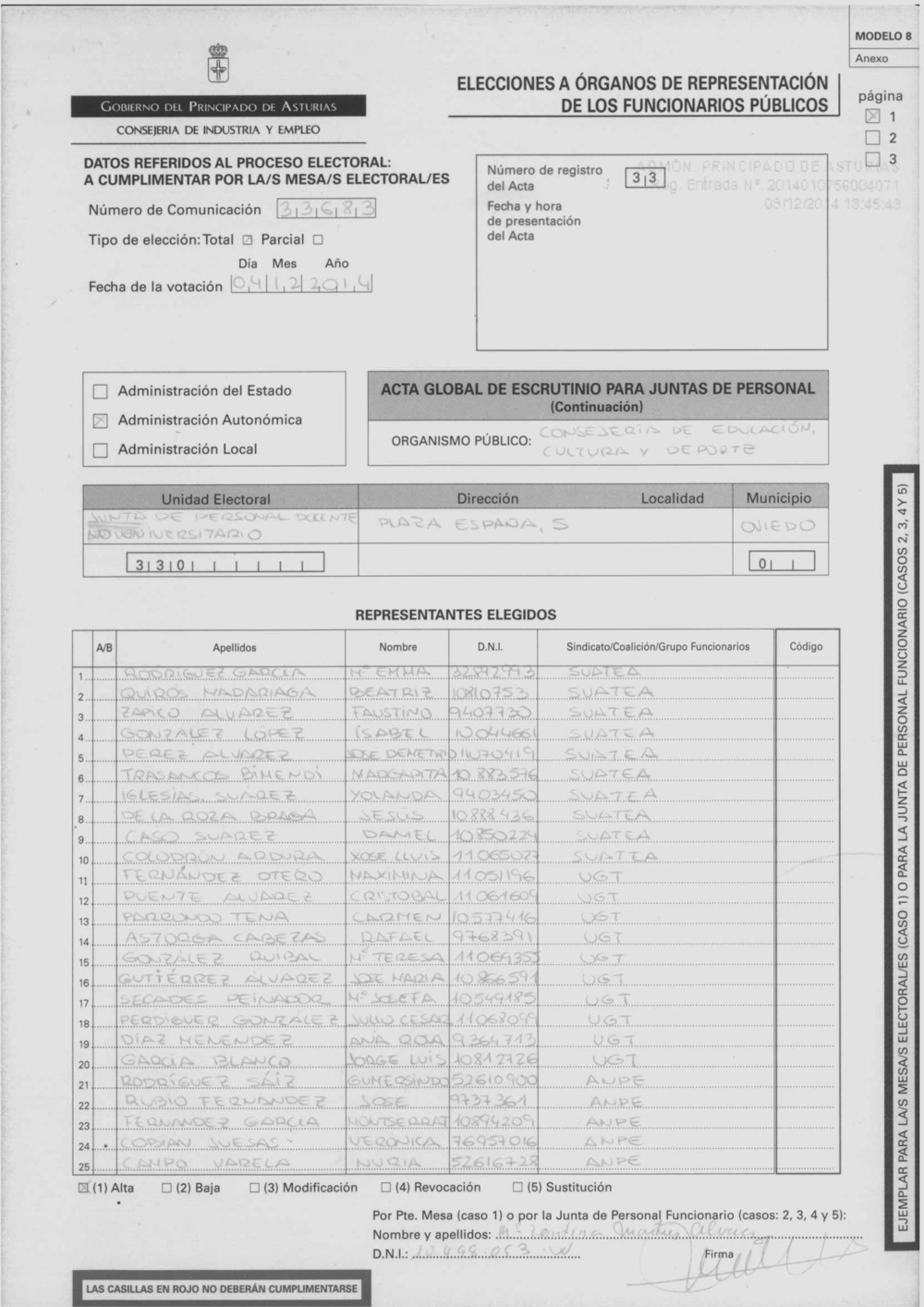- 2014-11 Elecciones sindicales JPD. Representantes