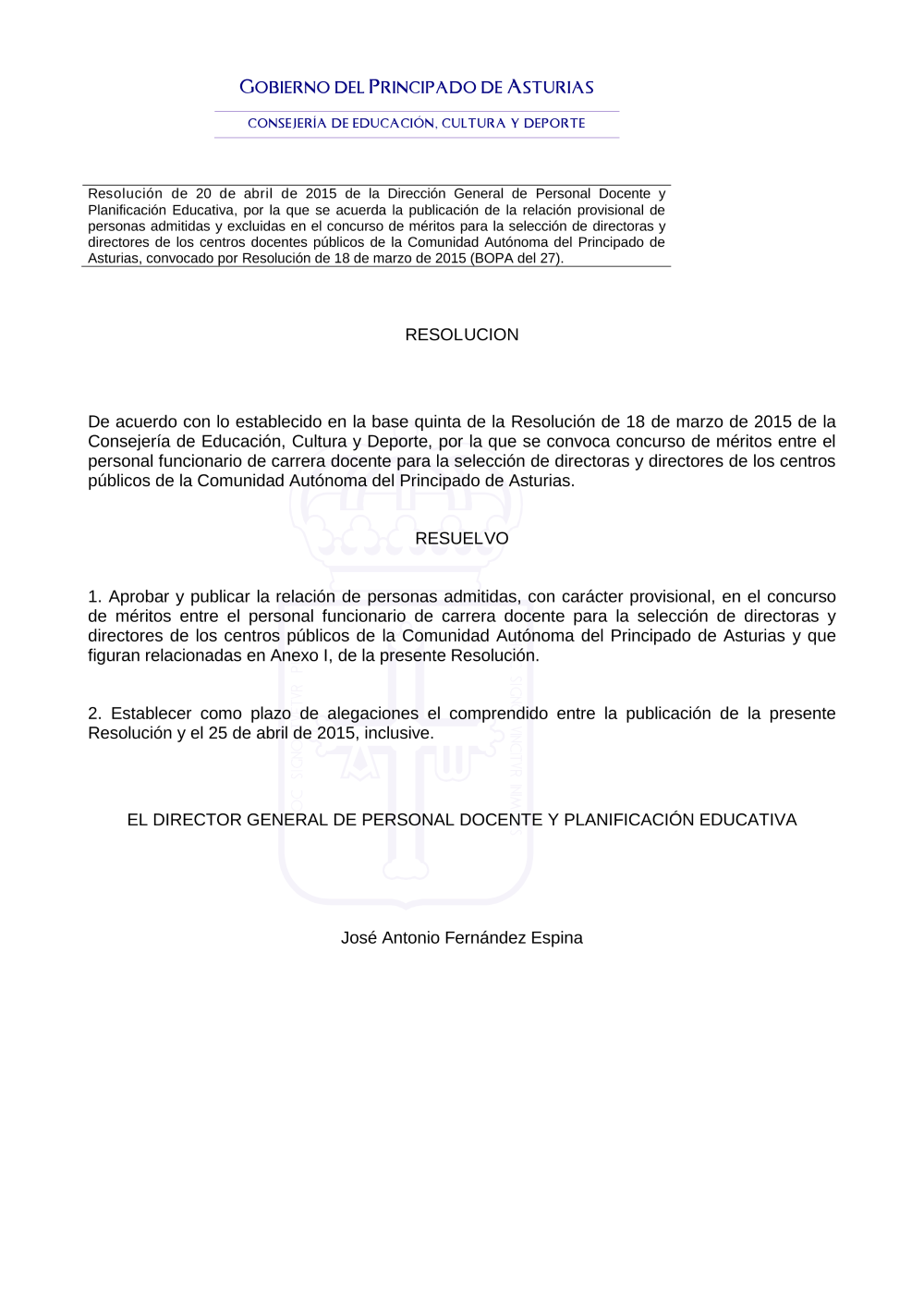 2015-04 Resolución admitidos excluidos provisionales dirección centros (pdf)