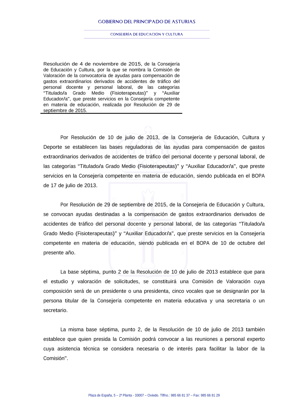 - Ayudas compensación accidentes de tráfico. Resolución de nombramiento de la Comisión de valoración (pdf)