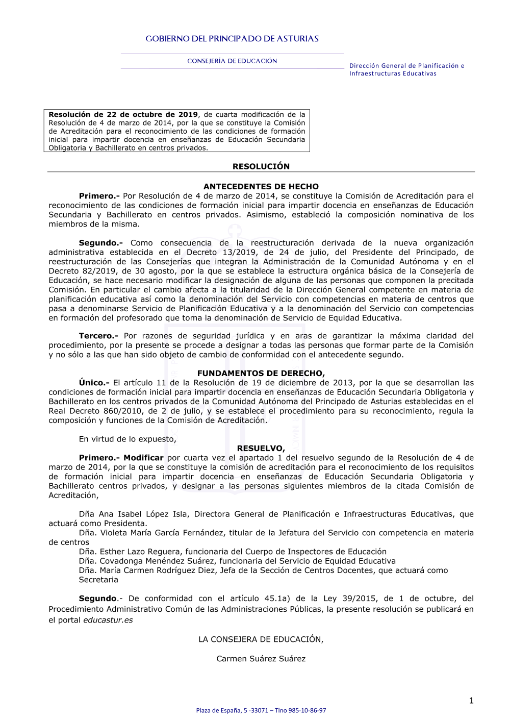 Resolución modif. Comisión 2019