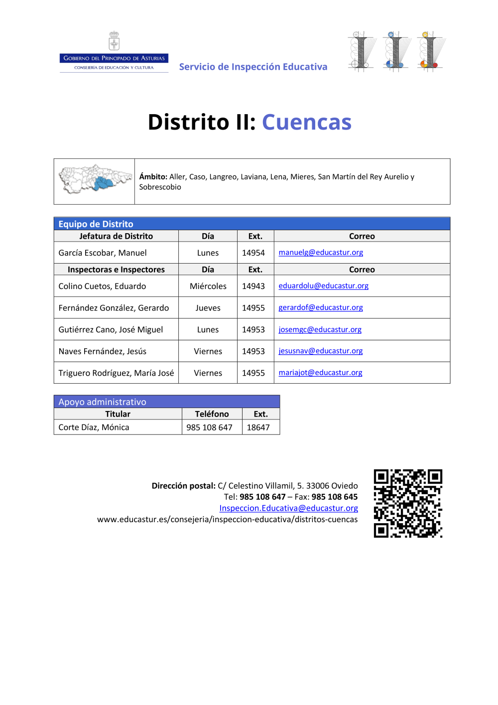 2018-04 Inspección educativa. Directorio distrito II, Cuencas (pdf)