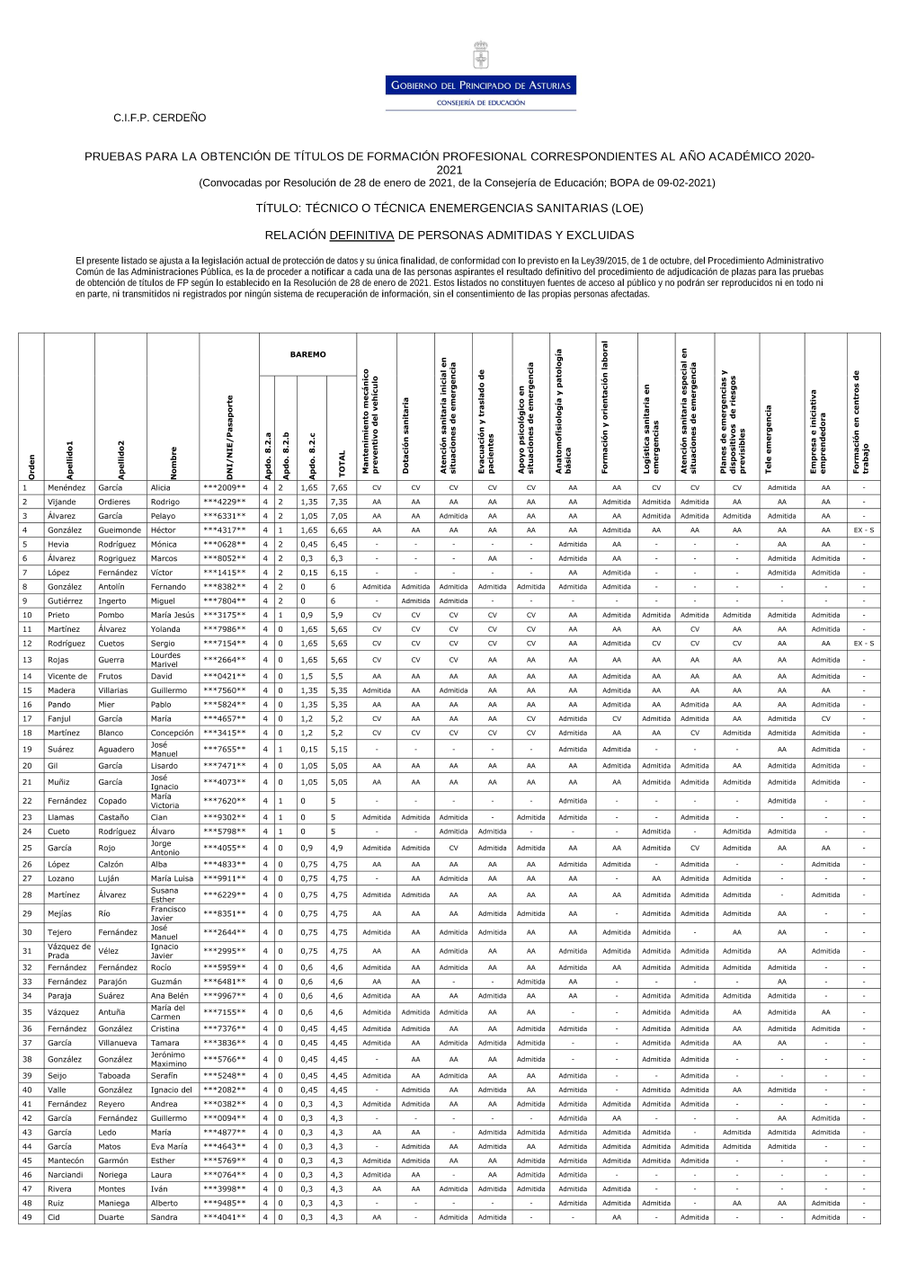 - El nombre de cada documento comienza con el código del cuerpo y el código y nombre de la especialidad.