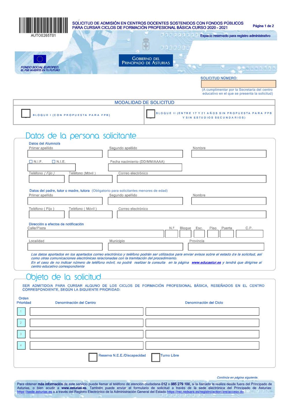 SOLICITUD; ADMISIÓN FORMACIÓN PROFESIONAL BÁSICA