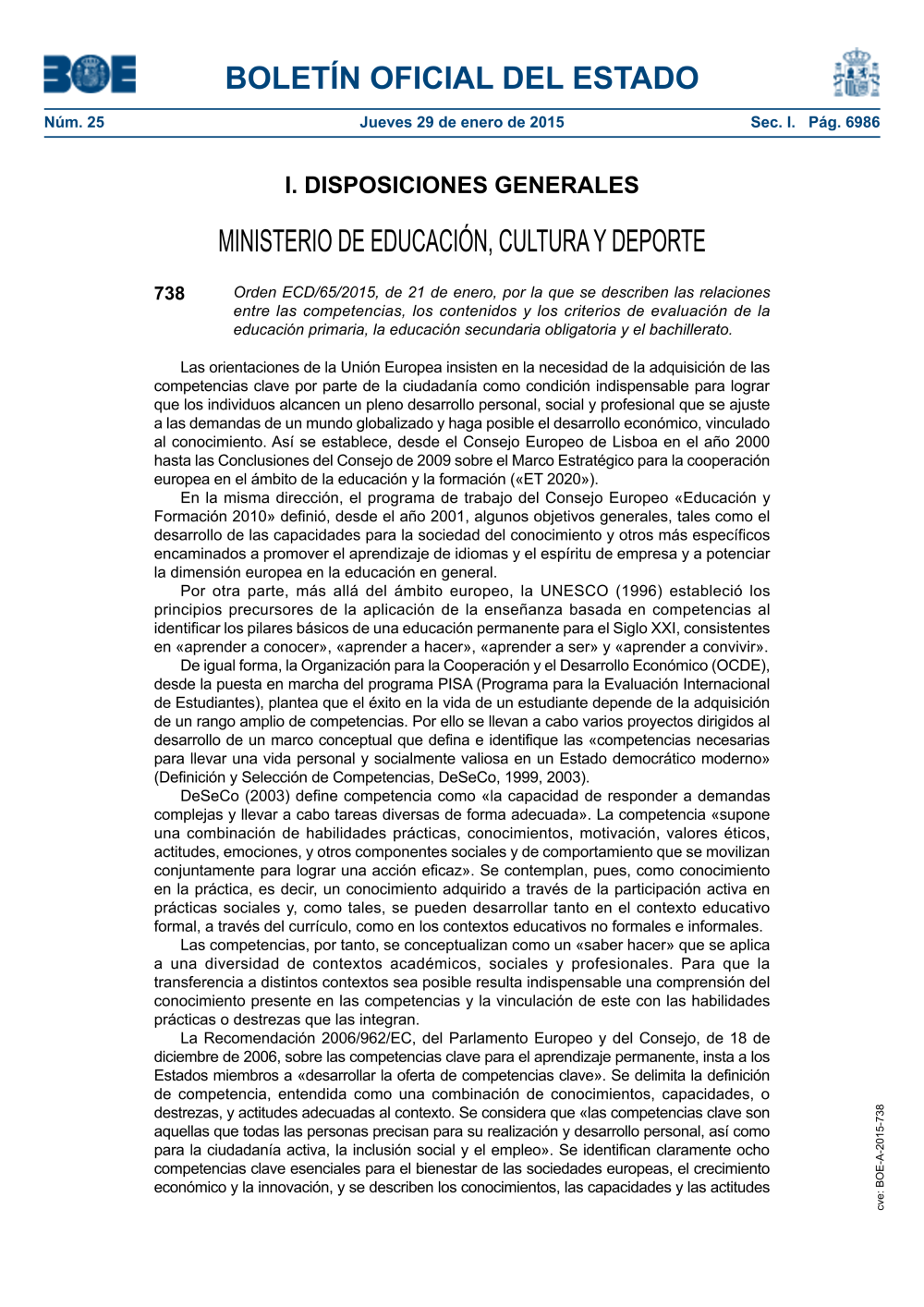 ORDEN ECD/65/2015 de 21/01/2015;"MINISTERIO DE EDUCACIÓN, CULTURA Y DEPORTE";BOE-A-2015-738;BOE 25 de 2015;738;29/01/2015