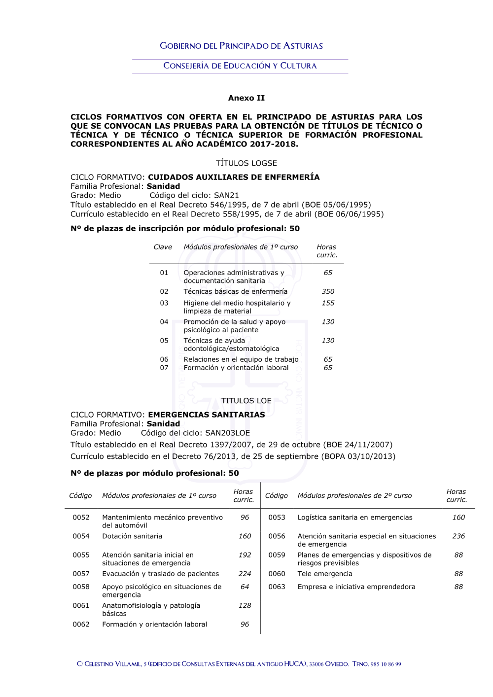 - El nombre de cada documento comienza con el código del cuerpo y el código y nombre de la especialidad.