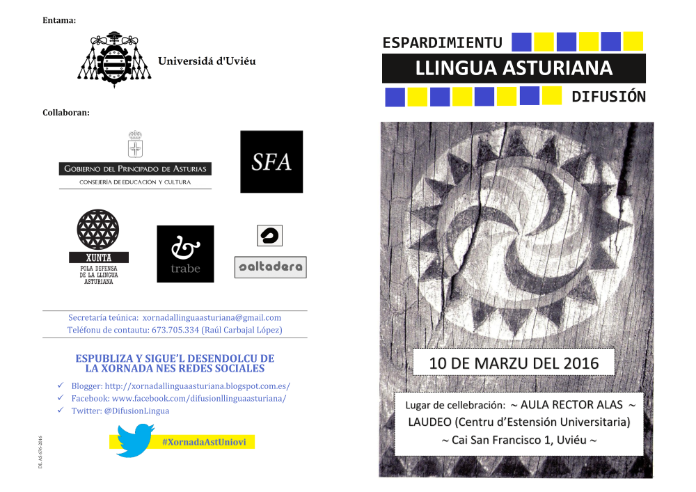 - Xornada d'espardimientu de la Llingua Asturiana 2016. Díptico (pdf)