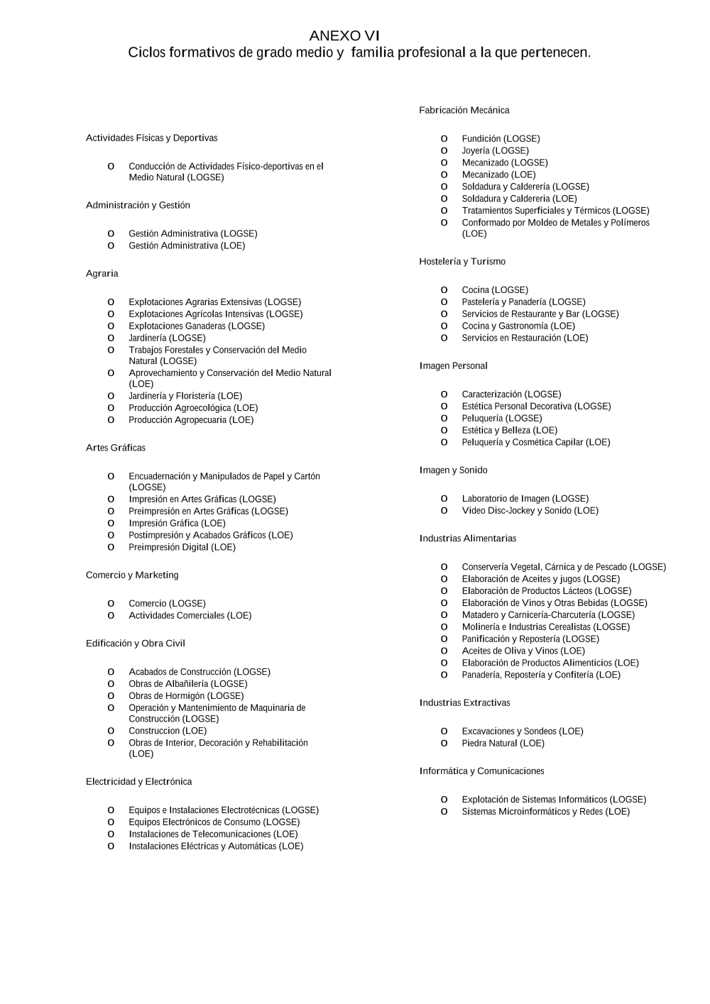 Admisión FP presencial 2016. Anexo VI. Ciclos GM (pdf)