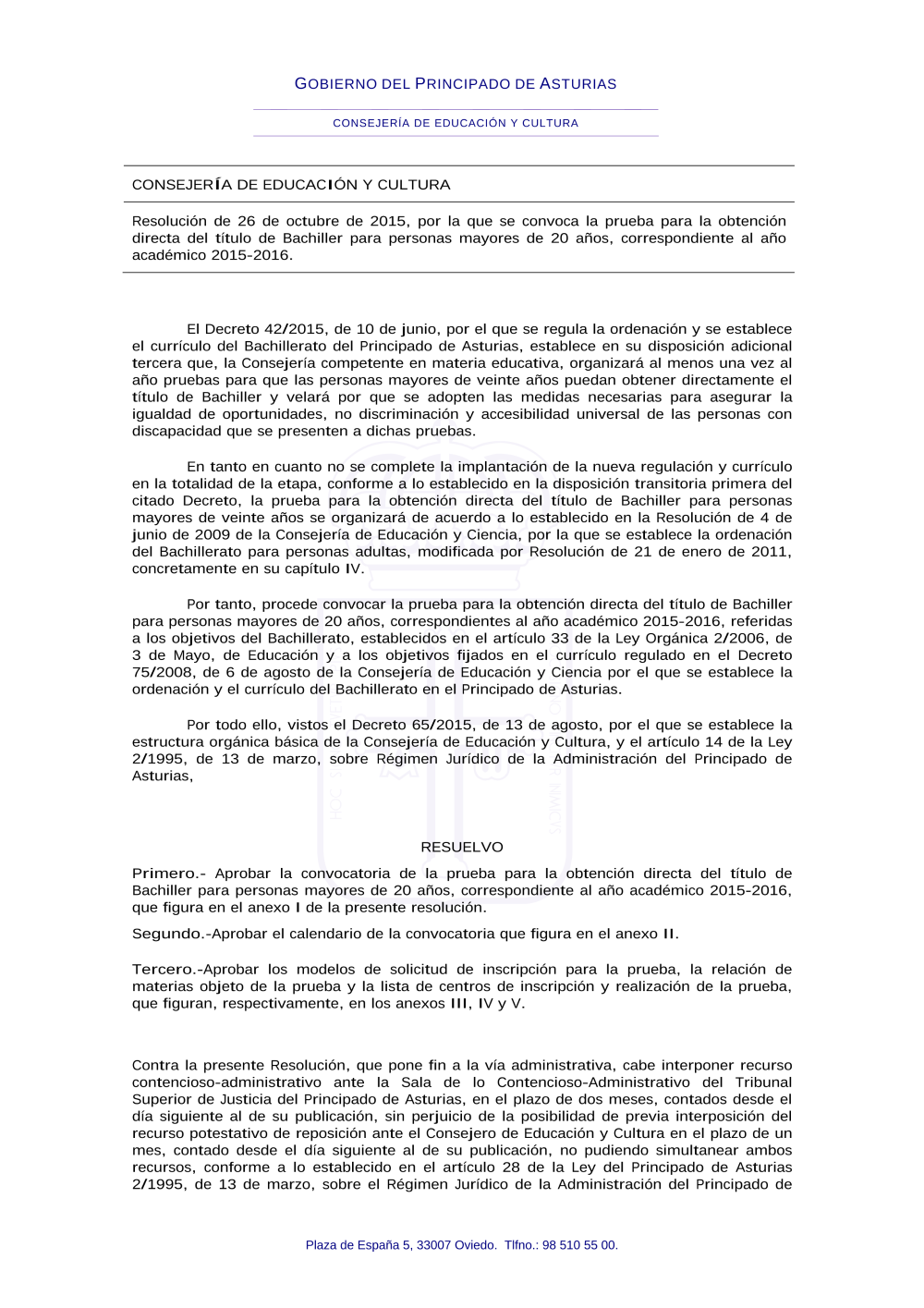 - Prueba Título bachiller +20 años 2015-16. Resolución convocatoria (pdf)