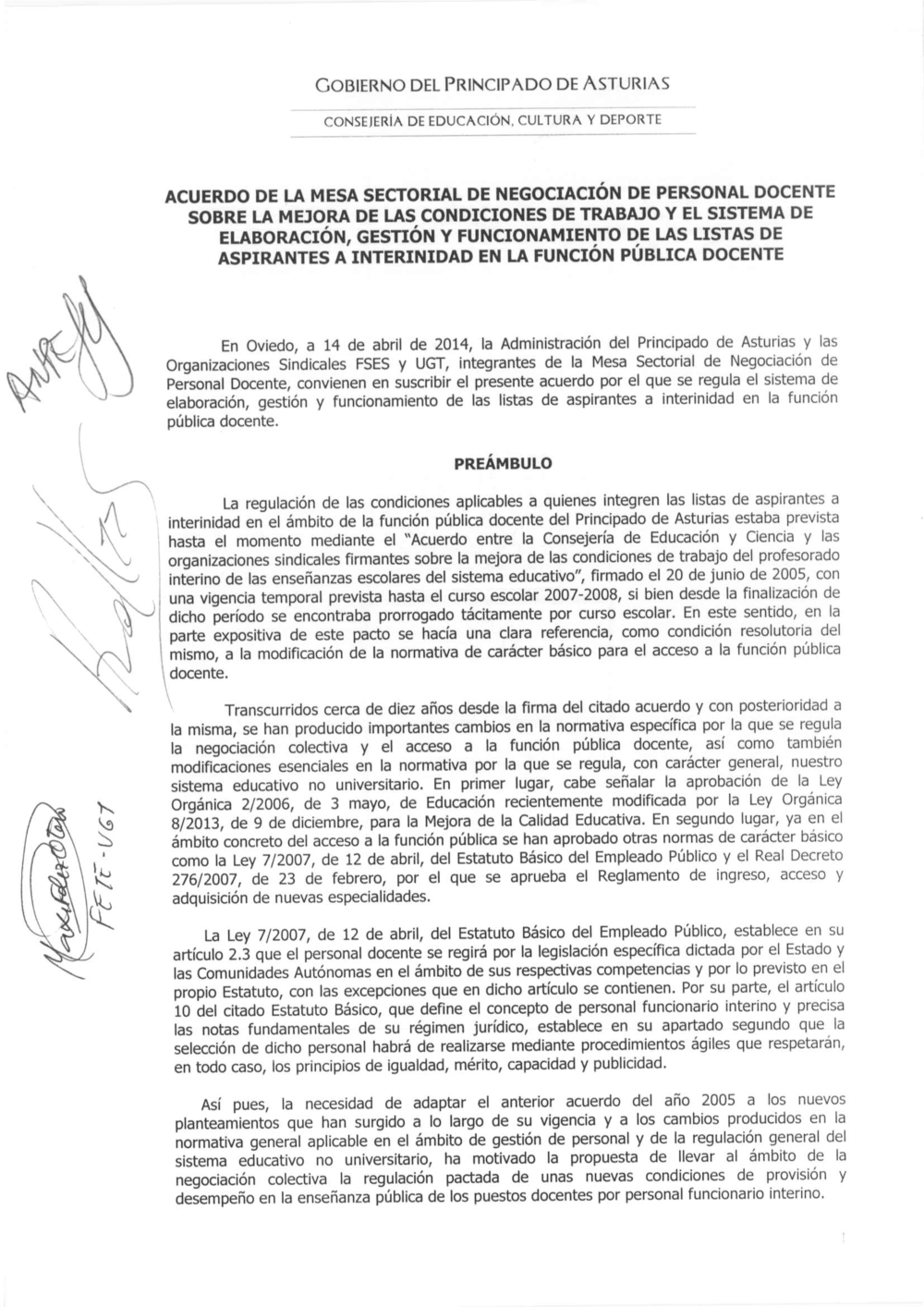 - 2014-04 Acuerdo mejora condiciones de trabajo y elaboración de listas de personal interino