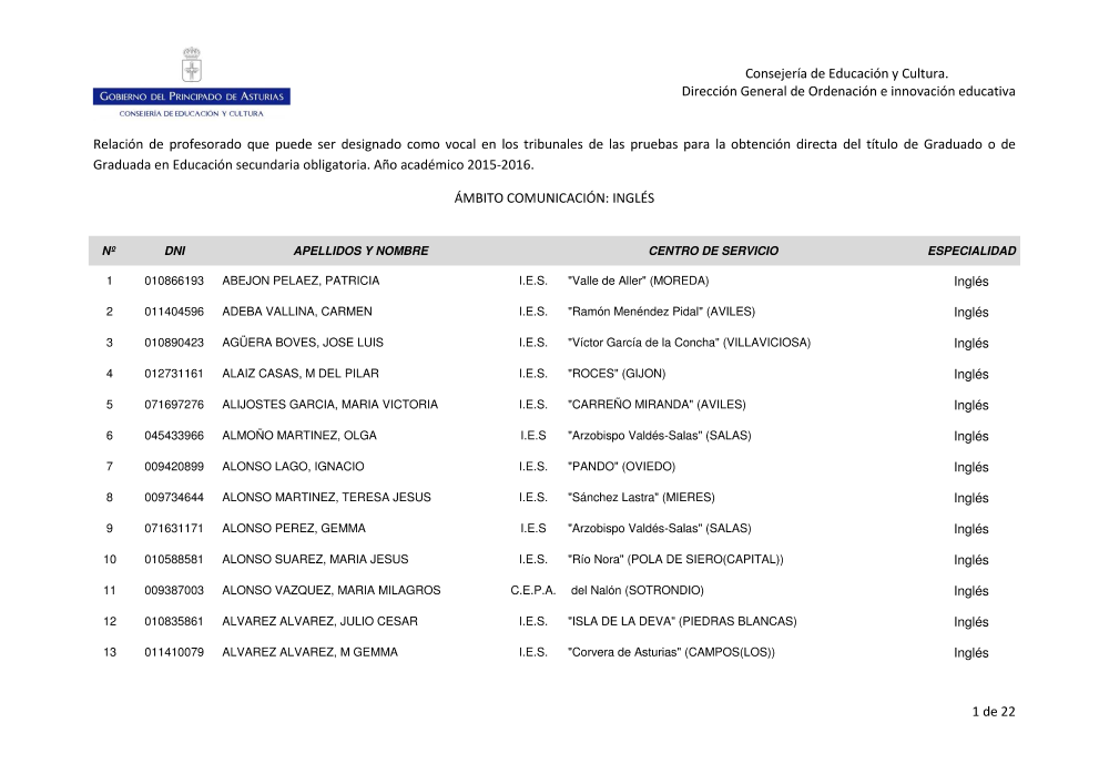- Obtención título ESO 2015-16. Designación tribunales. Listado vocales elegibles. Inglés (pdf)