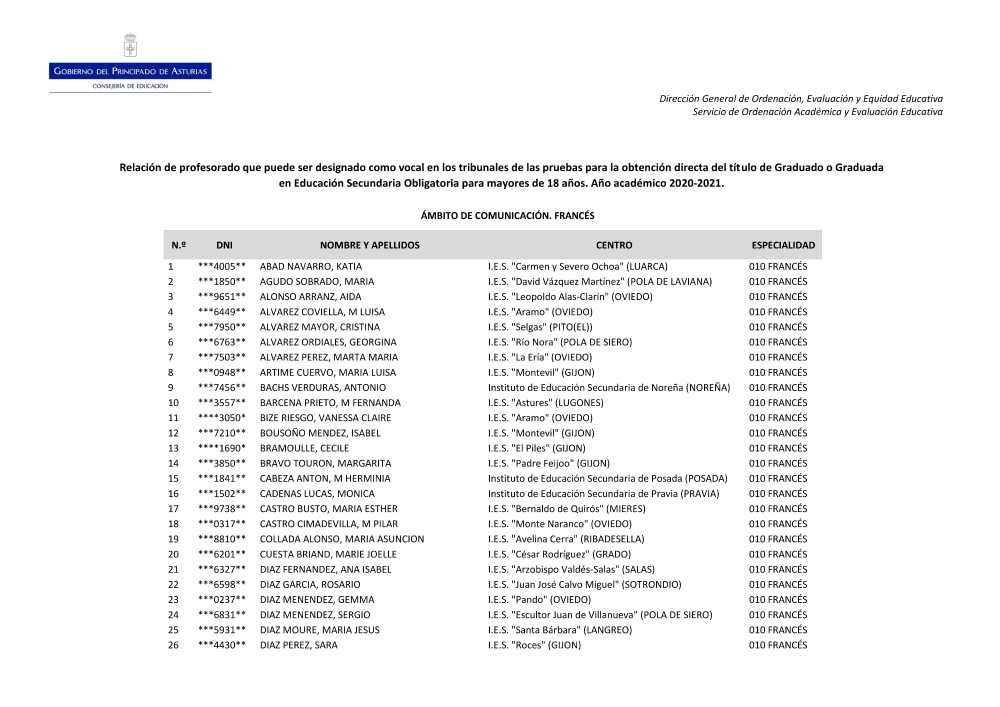 - El nombre de cada documento comienza con el código del cuerpo y el código y nombre de la especialidad.
