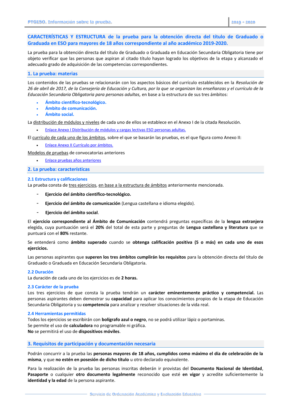 PTGESO. Información sobre la prueba.