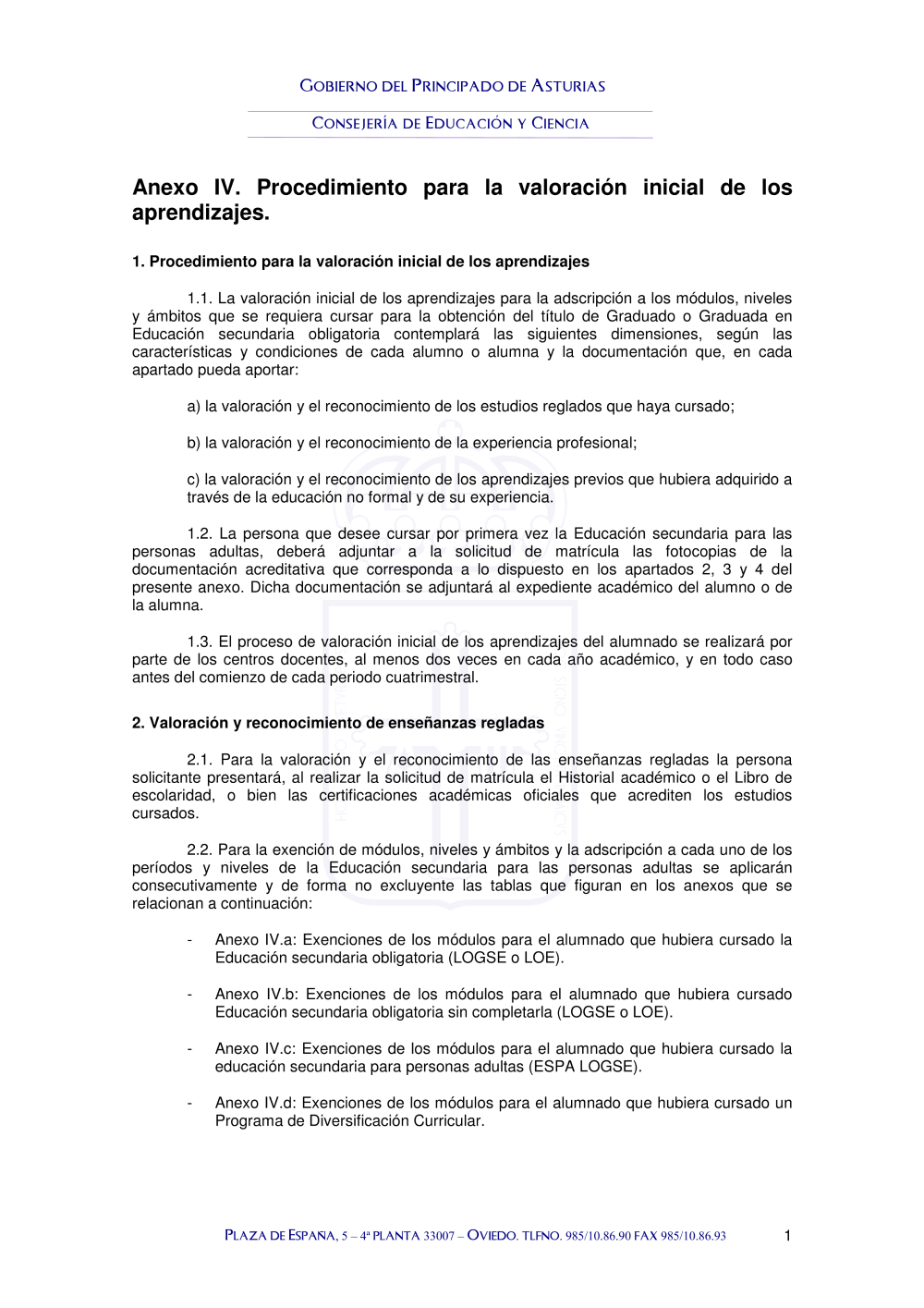 2009-01 Anexo IV. Procedimiento para la valoración inicial de los aprendizajes (pdf)