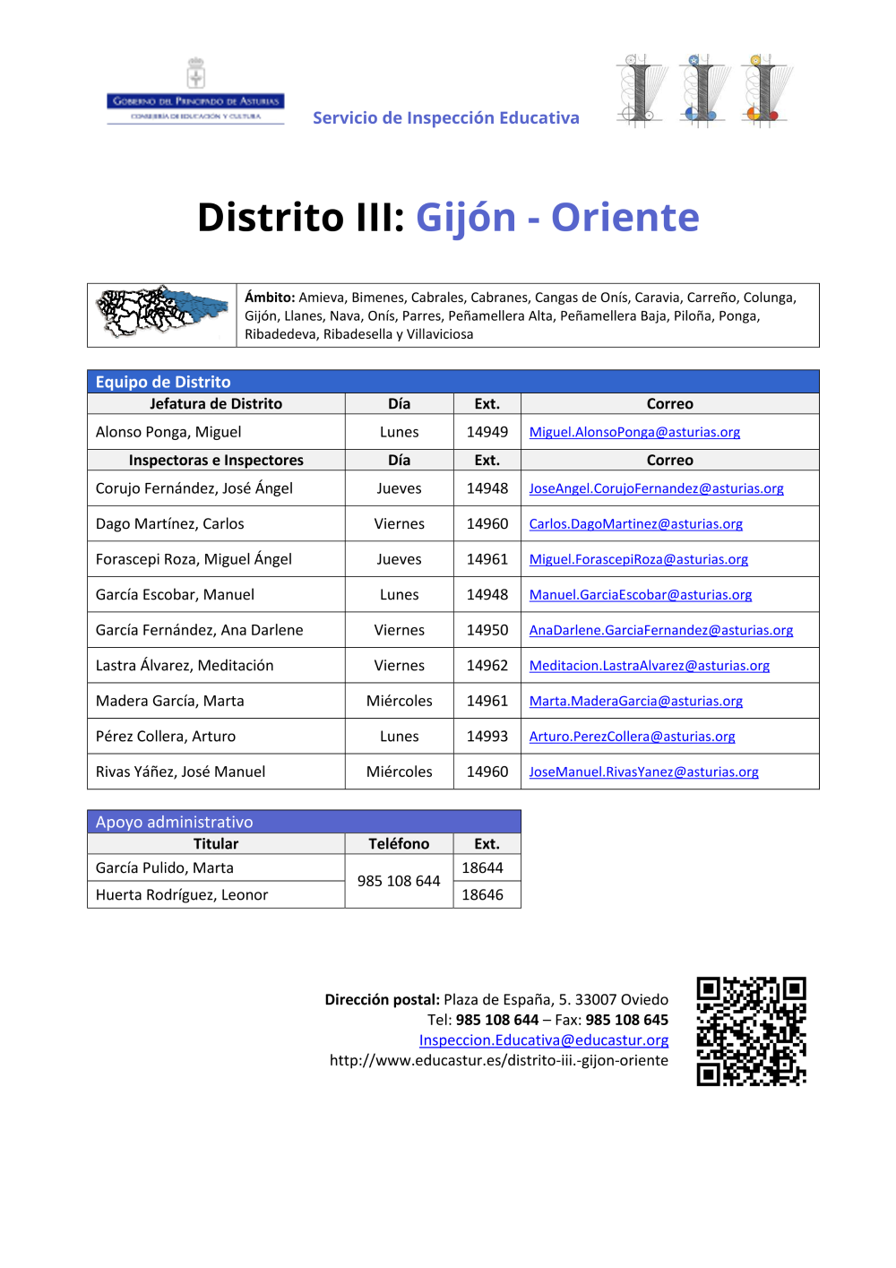 - Inspección. Distrito III. Gijón-Oriente (pdf)